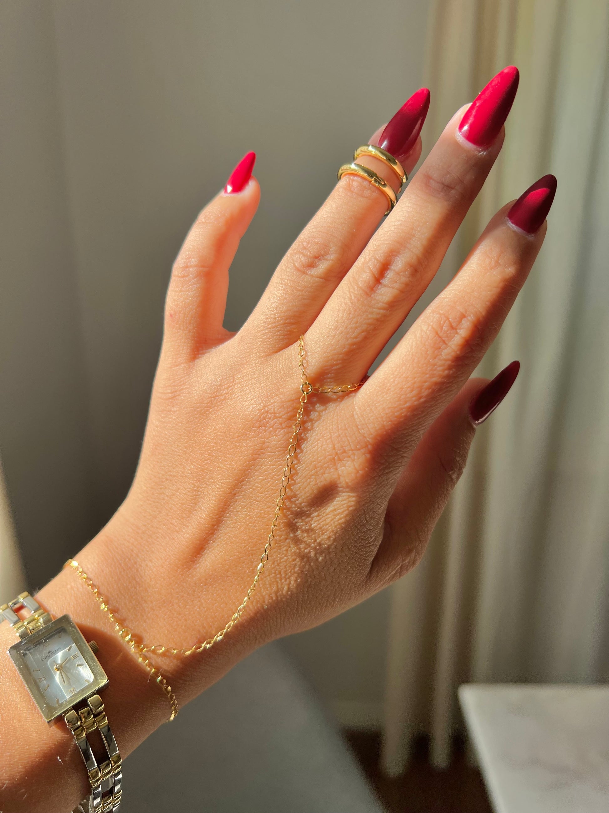 18K GOLD DAINTY HAND CHAIN